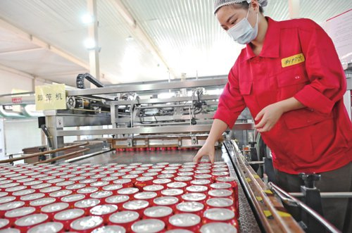 刺梨是一种贵州本地特色水果,近年来,贵州省惠水县依托“广东企业+贵州资源”合作模式,助力贵州刺梨原汁、物流、包材、罐装等十余家生态链企业发展。图为工人在贵州王老吉刺柠吉惠水基地饮料灌装车间内工作。新华社