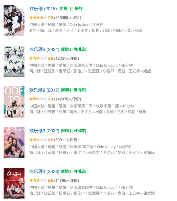 更多时候,国产季播剧陷入难以为继的困境,除却《乡村爱情》这样针对特定观众的长寿季播剧,更多系列的续集至少口碑和热度一项扑街。