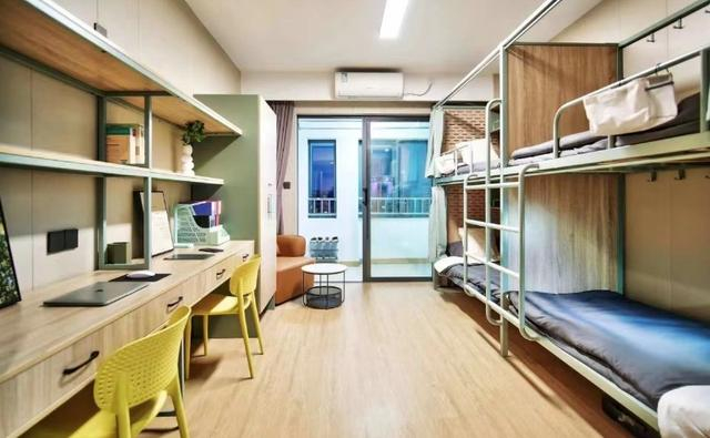 带着自己全部家当的淦萍萍一推开宿舍大门,就无比惊喜——六人间窗明几净、温馨舒适,虽然面积仅有30多平方米,却配上了独立卫生间、桌椅、定制床柜、空调等设施。他拉着室友四处参观,发现不仅餐厅、公共厨房、户外活动场、风雨车棚一应俱全,还有健身房、团训室、24小时免费直饮水等功能性配套服务,“这是我来松江以后租到的性价比最高的房子了,住在一起的也都是工作中的好朋友,让这里真的像一个家。”淦萍萍兴奋地说。