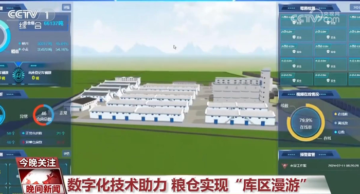 此外,一种数字化“库区漫游”技术让粮仓实现巡查“无压力”。在江苏张家港的沙洲中心,记者看到粮库库区漫游、在线巡库、粮情云图和虫害预警等几个板块,组成了粮食数智融合服务平台的核心功能。通过遍布粮库的高清智能摄像头和传感器,精准服务于每一个粮仓和每一粒粮食。比如说粮温的变化,从眼前这个绿黄红“三原色”对比图就可以看出来。