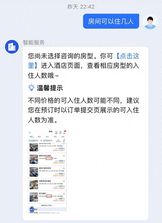 记者注意到,目前携程、飞猪、大众点评等网站都会在酒店预订页面的房型下面标明入住人数。绝大部分大床房、双床房型,都标注“2人入住”;部分家庭房、亲子房型会标注“3人入住”。携程的智能客服提醒,关于房型的入住人数,建议客户以预定时订单提交页展示的可入住人数为准。即便是民宿,也会标注清楚房间、床铺的数量和可入住人数。
