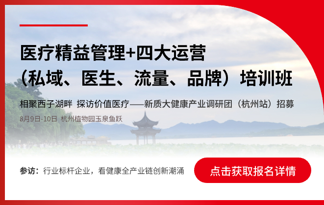 为鼓励价值医疗实践者,搭建价值医疗产学研、医药械跨界互动学习交流平台,“医学界”拟于8月9日-10日开展价值医疗主题游学——《新质大健康产业调研》(杭州站)活动,并将同期举办泰山奖获奖者分享会,以及私域运营、医生运营、流量运营、品牌运营四大专题培训。