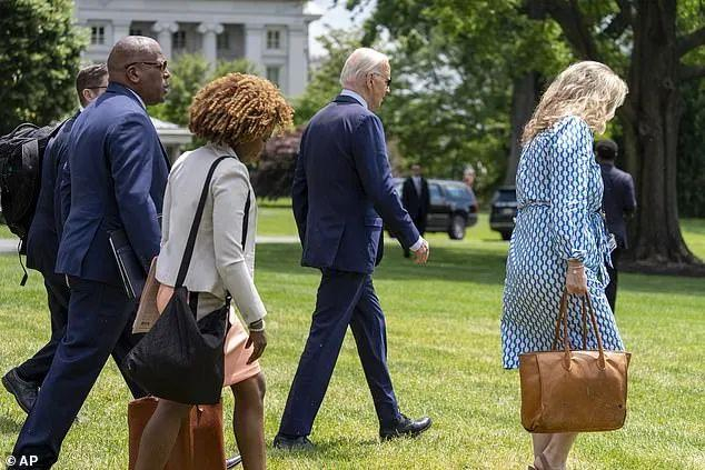 《每日邮报》称,三年多来,除非拜登与第一夫人在一起,否则助手们都会陪他走过南草坪,走向直升机。因为当一群人围着他时,拜登僵硬的步态就没那么明显。