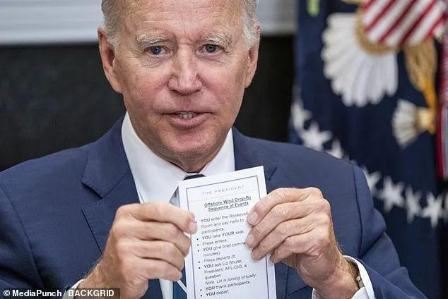 卡片提醒拜登应该做什么,包括“坐在你的座位上”这种简单提示。