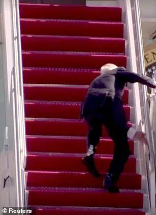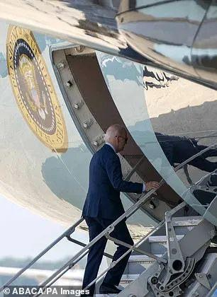 在多次摔倒后,去年夏天起,拜登几乎只走小楼梯登上空军一号,因为小楼梯的台阶数量只有14级,比大楼梯 26 级少了很多。