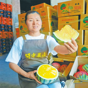“今年是我们第二年试种黄瓤西瓜,没想到如此受欢迎。”李会群说,这种新品种西瓜皮薄肉厚,汁多味甜,销量非常好。