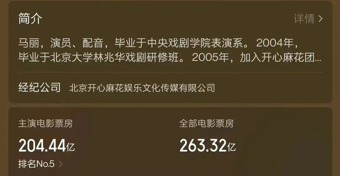 据猫眼专业版数据显示,截至目前,她与沈腾主演的新电影《抓娃娃》票房已经突破了15.65亿元,马丽也因此成为猫眼统计中国内首位累计票房破200亿元的女主演。