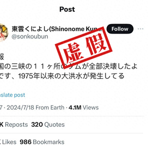 近日,X平台(原推特)上有传言称,中国的三峡大坝疑似尽数垮塌,造成了1975年以来最严重的洪灾。相关说法还附有一则时长约为30秒的视频,据称显示“三峡大坝决堤,造成数千个家庭被迫撤离”的场景。