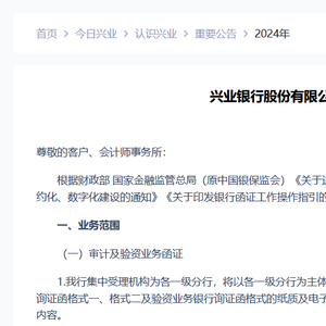 事关上市公司财务审计,兴业银行公示银行询证函业务指引,6月来多家大行响应新规