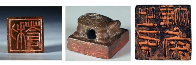 二号墓出土的三枚印章,左侧为私印“利苍”、中间为官印“长沙丞相”、右侧为爵印“轪侯之印”。