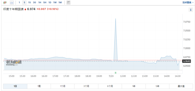 印度10年期国债收益率跌至2022年4月来最低。
