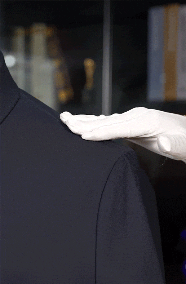 上身流畅,肩线贴合,下落自然。同事穿着都是非常的挺括有型,气质挺拔。