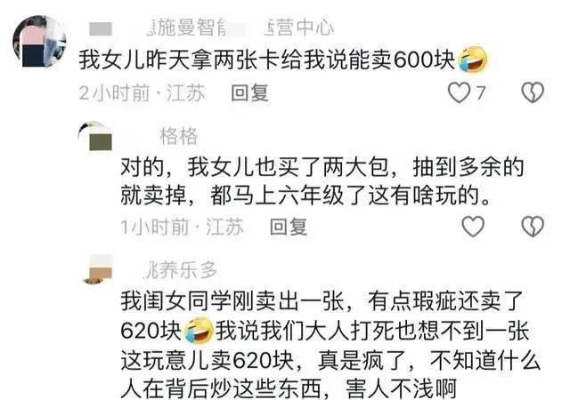 按照“黄牛”的说法,四五百元买来的稀有卡牌,拿到市面上一转手,能轻松炒到两三千元一张。然而,有不少砸重金抽到稀有卡牌的孩子却表示,等想要卖卡变现时,却发现根本卖不出去。