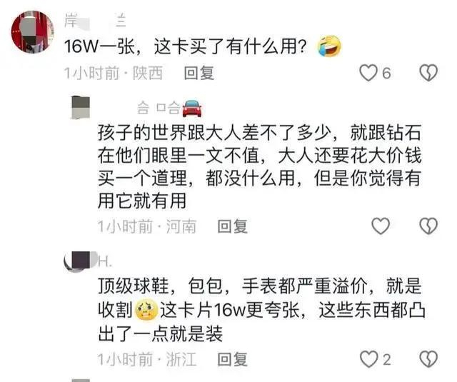 “我想问问真的有大人愿意花16万给孩子买一张卡吗?”