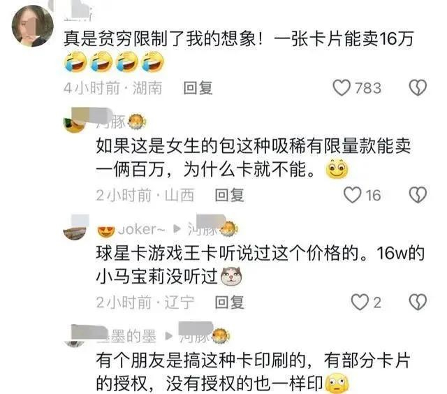 “之前有听说过青眼白龙一张卡被拍到几千万,16万的小马宝莉还是第一次听到。”