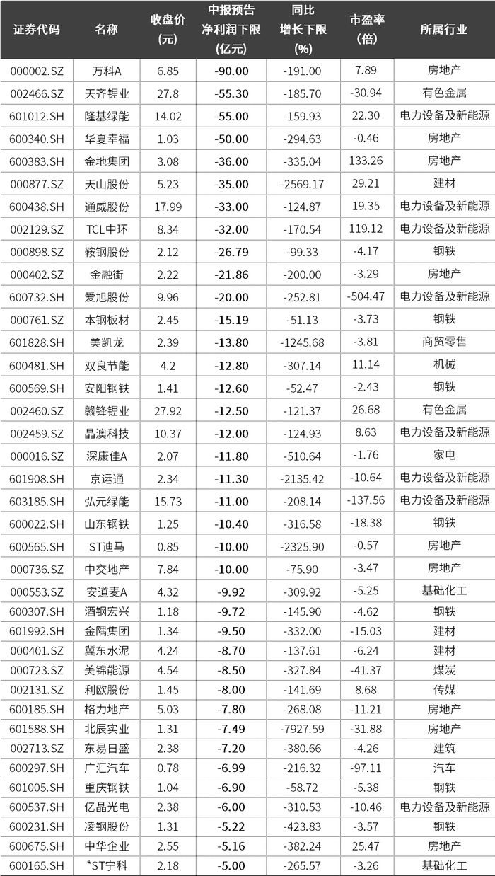 为了方便大家高效防雷,我们特梳理了业绩预计亏损额超5亿元,且幅度超-50%的公司,共38家。具体如下表所示,供参阅。