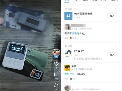 近期,新京报记者在QQ平台搜索发现,长期收购各类银行卡信息一直都有。这些信息主要出现在一些特定的“频道”,诸如某职业学校、找兼职、厨师、装修、交友等相关频道,甚至还有“收全国银行卡盾”的专属频道。