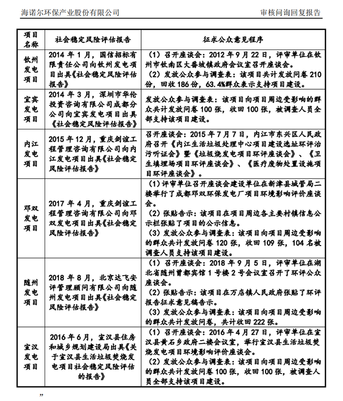 申报文件显示,发行人存在的经营风险包括社会公众对垃圾处理项目持负面看法的风险,即部分社会公众担心项目建设和运营可能对周边环境造成二次污染,导致垃圾处理项目存在较为明显的“邻避效应”。为此,国家发改委在项目核准手续中增加了社会稳定性风险评价程序,环保部也提高了环评要求并进一步规范了环评听证会和公众调查程序。