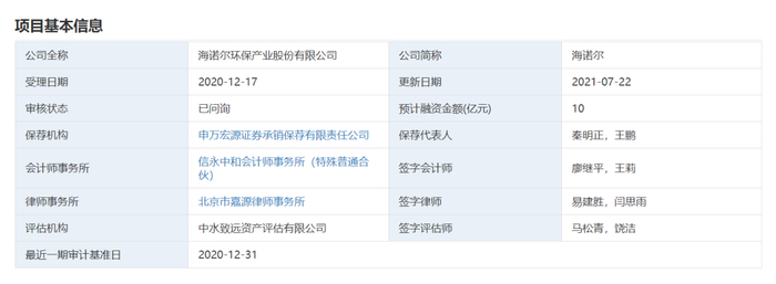 海诺尔环保产业股份有限公司(首发):符合发行条件、上市条件和信息披露要求。