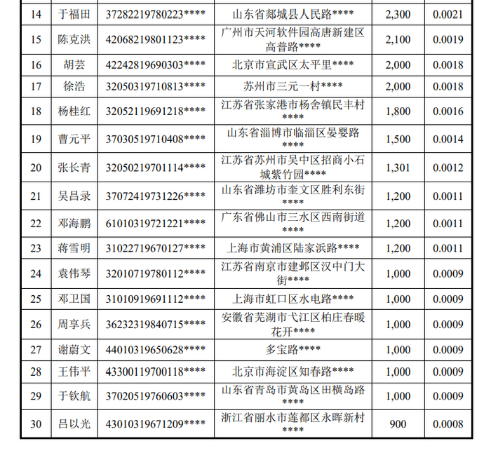 经对比 2020 年 12 月 17 日与 2020 年 12 月 18 日的股东名册,2020年 12 月18 日上午交易时间,公司新增 2 名股东孙茂振和杨桂红,分别持有公司 3,000 股和 1,800 股,合计持股 4,800 股,持股比例为 0.0043%,持股比例较小。