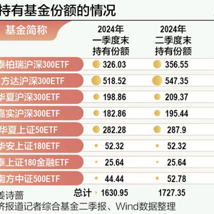 而另一只易方达深证100ETF由于中央汇金投资去年持有比例不足1%,因此季报未做披露。不过另一个中央汇金系的成员中央汇金资产持有易方达深证100ETF超过20%,从其一季报、二季报披露情况来看,中央汇金资产没有增减该ETF基金,继续持有6.93亿份,二季度末持仓比例为27.42%,持有市值为16.41亿元。