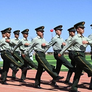 7月23日,在启智实训教育基地,基地教官正在为来宾展示单兵队列动作展示。记者陈岩摄