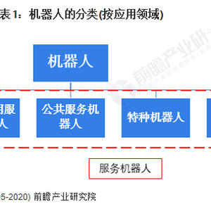 按机器人的应用领域进行分类,机器人可分为工业机器人、个人/家用服务机器人、公共服务机器人、特种机器人和其他应用领域机器人。根据《机器人与机器人装备词汇》(GB/T 12643-2013)的定义,服务机器人是指除工业自动化应用外,能为人类或设备完成有用任务的机器人。