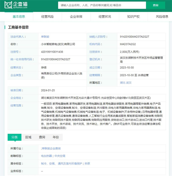 近期,小米还在武汉建立了自己的制造工厂,‌即小米智能家电(‌武汉)‌有限公司,‌这标志着小米在逐步实现空调产品的自建生产。