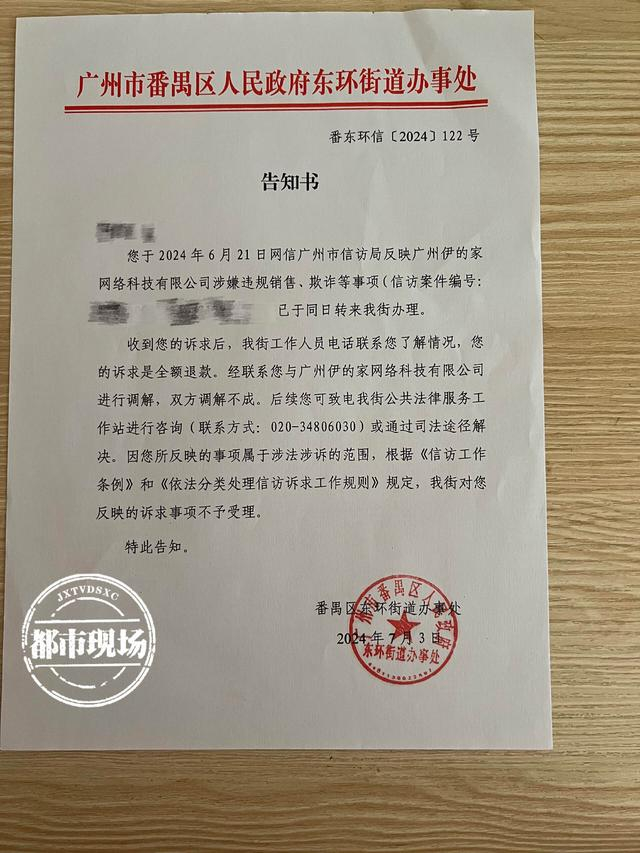 根据蔡女士提供的资料显示,7月3日,广州市番禺区人民政府东环街道办事处就蔡女士投诉伊的家网络科技有限公司一事回复,双方调解不成,且因蔡女士所反映的事项属于涉法涉诉的范围,街道不予受理;7月19日,佛山市桂城市场监督管理所就蔡女士的投诉回复,由于佛山华雅电子商务有限公司明确表示拒绝调解,依规定终止调解。投诉无效,蔡女士选择了起诉。目前,南昌市西湖区人民法院已向蔡女士发送了诉前调解告知书,本案进入诉前调解程序。