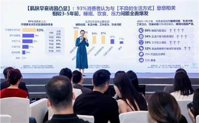 中国女性“皮肤衰老年轻化”趋势的出现,与当代年轻人生活方式变化直接相关。会议上,上海应帆数字科技有限公司(CBNData)副总裁姚贝贝发布的另一份消费者大数据调研揭开了趋势背后的深层原因。