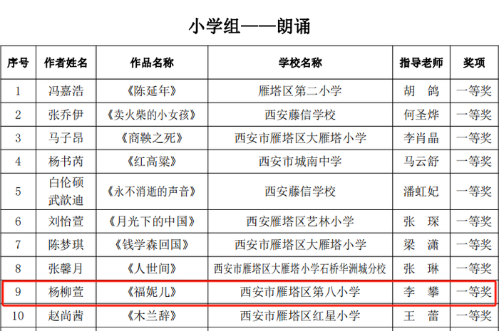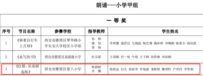 朗诵-小学甲组