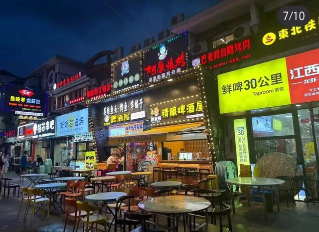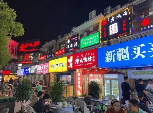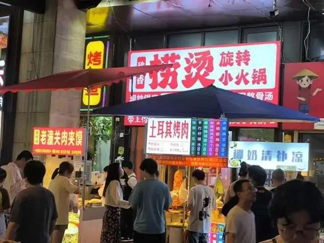 如今这里品类更丰富,环境也更整洁了,麻辣小海鲜、衢州鸭头、爆浆鸡蛋仔、东南亚烧排骨、老成都串串香、老挝冰咖啡……天南地北美食荟萃。