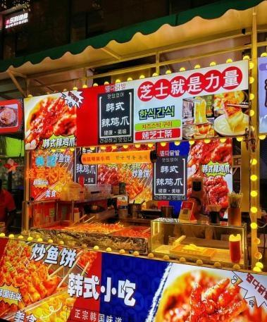 韩国街的首尔夜市,在社交媒体上也是顶顶有名,沿街一字排开的透明帐篷,就是这里极具辨识度的标志。