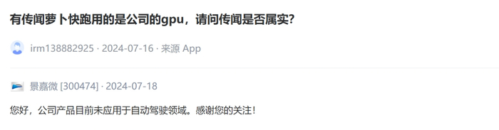 景嘉微[300474] :公司产品目前未应用于自动驾驶领域。