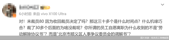 不过,针对7月24日马未都所发布回应,该员工表示并不买账,并在社交平台发布视频称,“声明回应的是博物馆倒闭为不实消息,但员工是对观复文化和小观拍卖等公司有诉求,声明也没有解释,为什么38名得到补偿的员工拿到的不是劳动解除协议书,而是由北京市劳动人事争议仲裁委员会给出的调解书”。