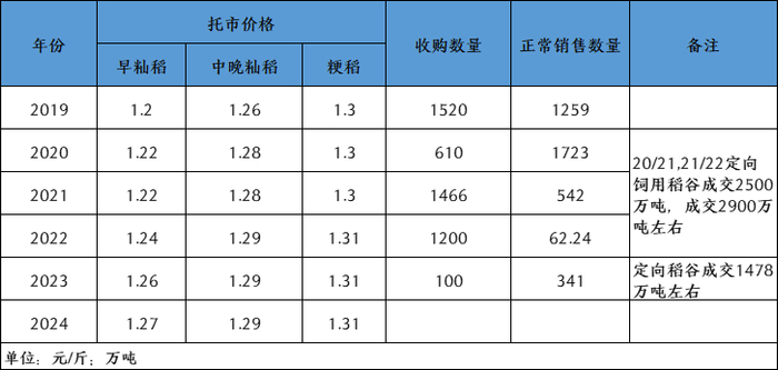 表2:2019-2024年国内托市稻谷收购和销售情况