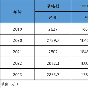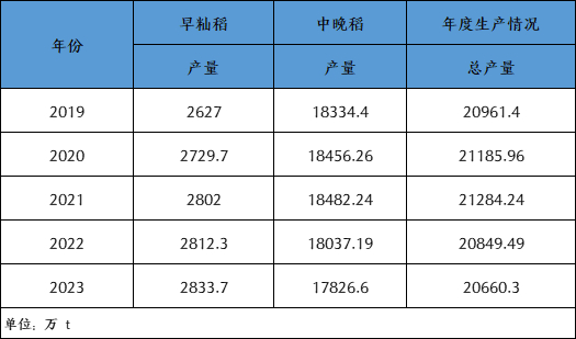 表1:2019-2023年国内稻谷生产情况表