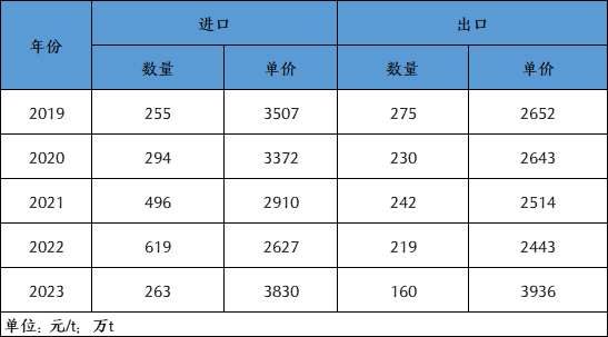 表3:2019-2023年国内稻米进出口情况