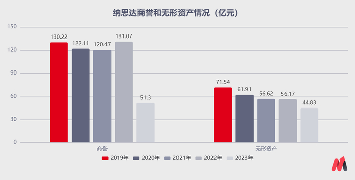 不过这并不算完,在计提了大量的减值之后,实际上纳思达账上仍有大量的商誉以及无形资产。截至到2023年年底,纳思达的商誉和无形资产在经过了大额计提之后,合计仍还高达96亿,约占到公司总资产的25.1%。