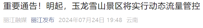 关于玉龙雪山景区在2024年暑期实行动态流量管控的通告