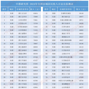 中郡研究所2024全国县域居民收入百富县监测报告指出,该榜单依据县域城乡居民人均可支配收入数据,监测出“全国县域居民收入百富县”。中郡研究所官网显示,迄今为止中郡研究所已连续进行了23届全国县域城乡居民人均可支配收入监测。