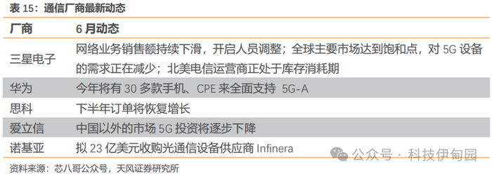 6 月,通信行业仍维持低迷,5G 设备需求持续下滑。