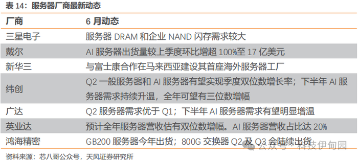 6 月,AI 服务器需求维持高景气度,供应链厂商供不应求延续。