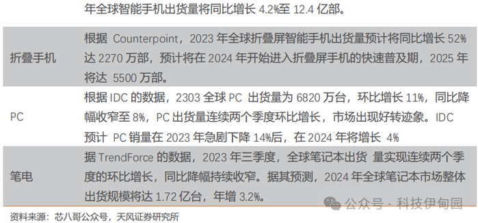PC市场:尽管2023年整机需求下滑使得消费类SSD需求下滑,但是高容量SSD的应用显著提升,1TB PCIe4.0已基本是PC市场的主流配置。在PC DRAM方面,由于更轻薄、长续航以及LPCAMM新形态产品在PC上的应用发展,CFM闪存市场预计LPDDR,尤其是LPDDR5/X将迎来迅速发展。随着新处理器平台的导入DDR5在2024年也将加大在PC上的应用。同时Windows10停止服务后,Windows的更新也将会对2024年的PC销量有一定提振。AI PC预计在2024年全面推广,与传统PC不同,AI PC最重要的是嵌入了AI芯片,形成“CPU+GPU+NPU”的异构方案。可以支持本地化AI模型,所以需要更快的数据传输速度、更大的存储容量和带宽。