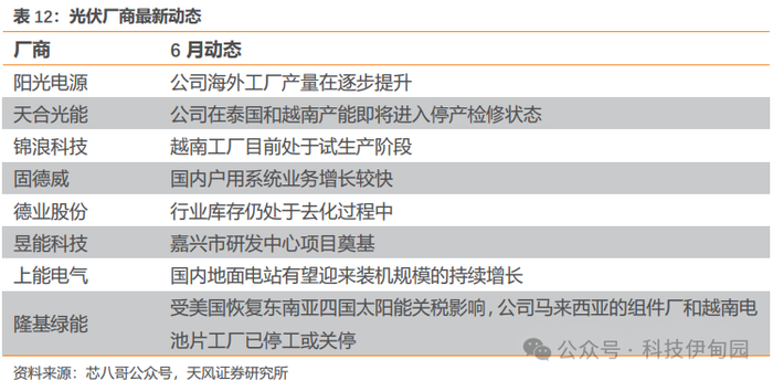 6 月,海外光伏市场订单增长稳定,关注美国 6 月 6 日起恢复东南亚四国太阳能关税对于头部厂商影响。