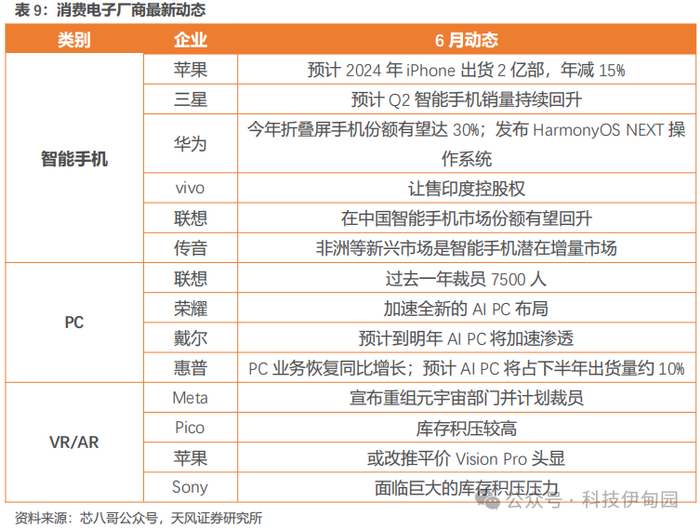 6 月,智能手机市场竞争加剧,AI PC 成头部厂商布局重点,XR 终端库存积压较高。