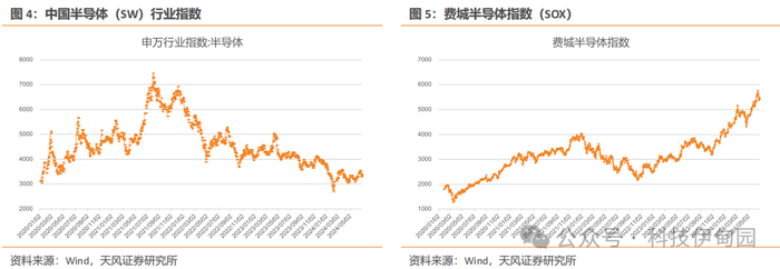 半导体指数走势:2024 年 6 月,中国半导体(SW)行业指数上涨 0.60%,费城半导体指数(SOX)上涨 6.21%。