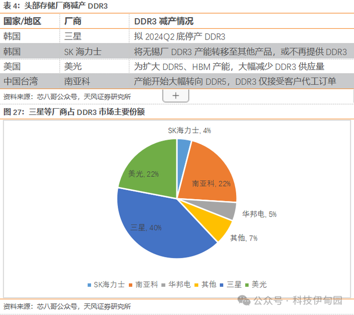 值得关注的是,近期三星、SK海力士正加大对HBM、DDR5 等高端产品投入,计划逐步退出DDR3等市场。作为DDR3主要供应商,产能调整对于终端供应及价格影响较大。