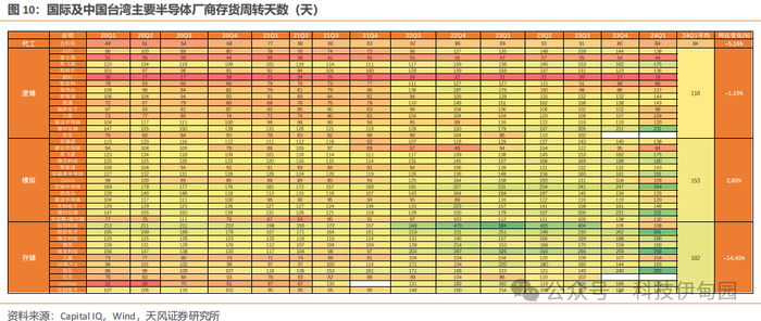 2024 年第一季度,国际及中国台湾代工、模拟、存储板块公司存货周转天数同比下降,分别为-5.16%,-1.15%,-14.45%。逻辑板块公司存货周转天数同比小幅上升,为+2.80%。