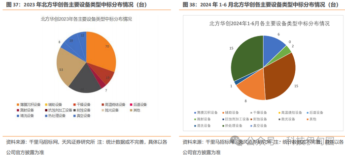 2024 年 6 月,北方华创可统计中标设备 6 台,同比+50.00%,包括 1 台刻蚀设备,1 台其他设备,1 台热处理设备,1 台清洗设备,1 台薄膜沉积设备,1 台溅射设备。